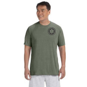 - Dark heather, safety green, safety orange 50/50 cotton/poly.